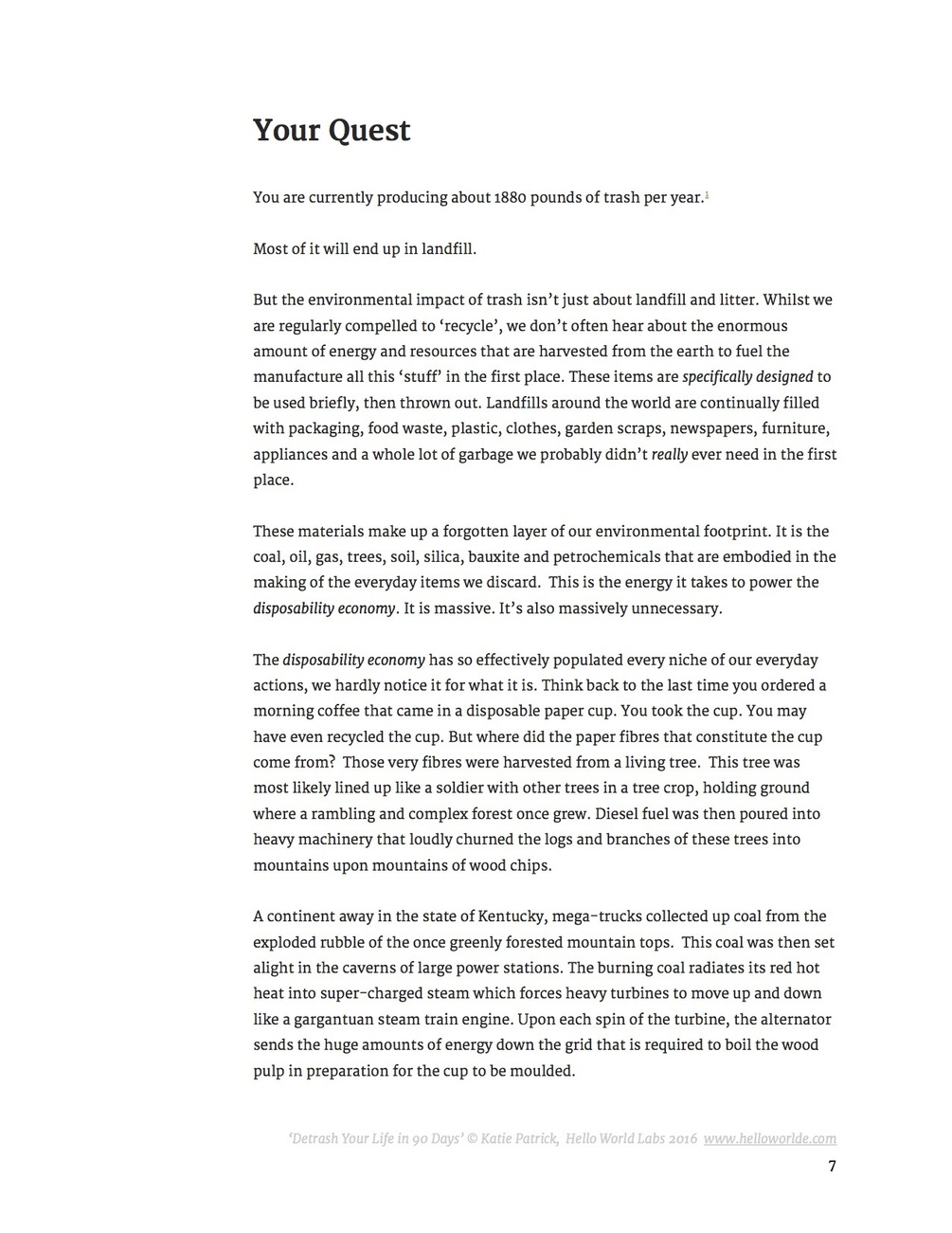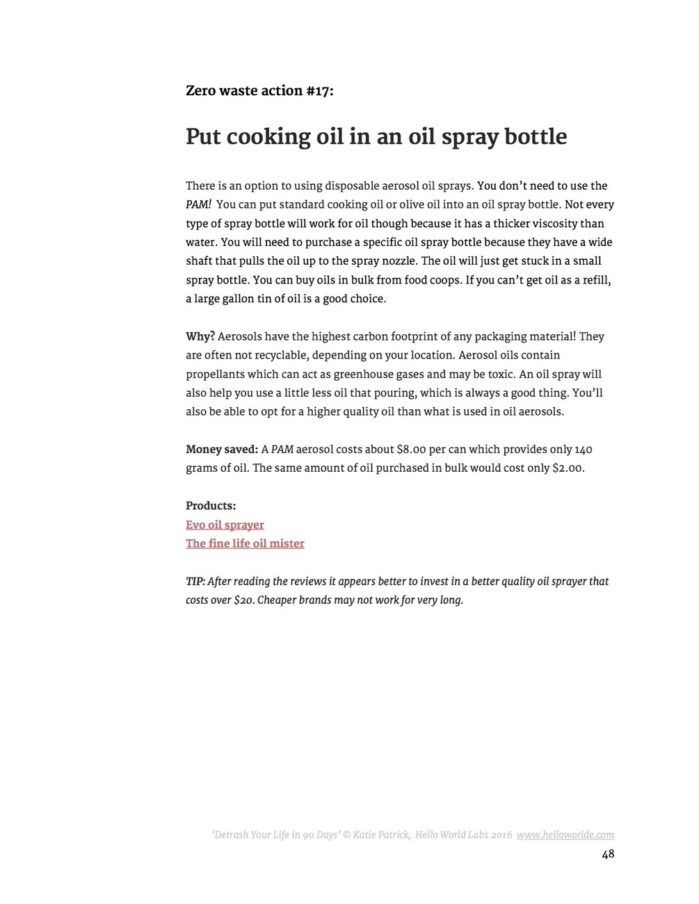 With detailed research into nearly fifty Life Cycle Analysis (LCA) reports, environmental engineer and award-winning entrepreneur, Katie Patrick, details the mind-boggling volumes of trash that are prevented by each zero waste action. She explains the specific amounts of coal, oil, gas and water that are embodied in the manufacture of the everyday items we throw away, revealing quantitative evidence of just how powerful zero waste living can be to change the world.