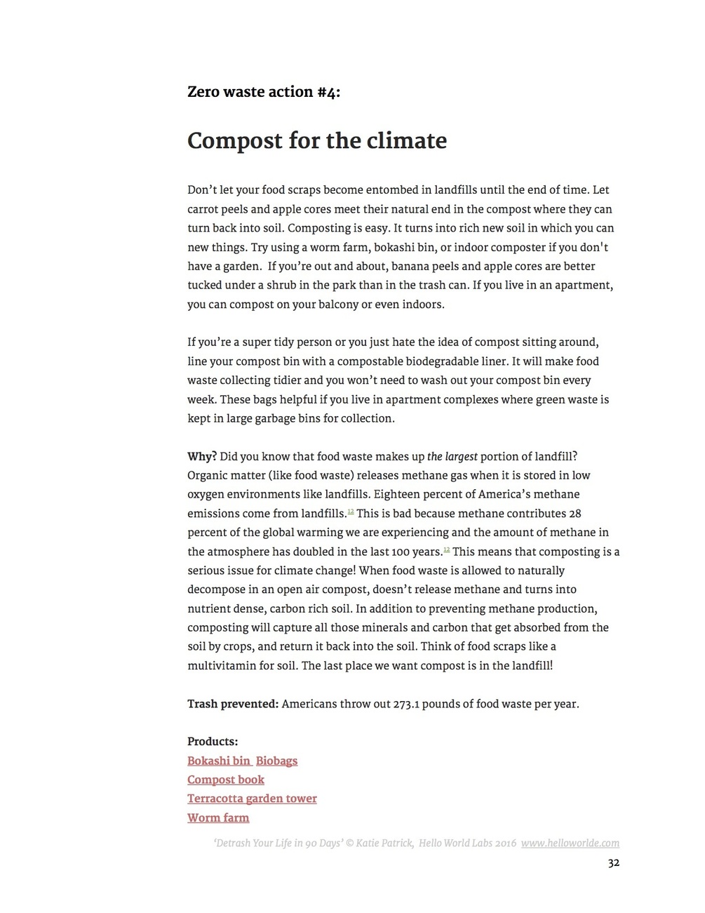 Welcome to the world's most comprehensive manual about how to live without making any trash whatsoever! This monster 215 page guide will teach you 148 'zero waste actions' complete with detailed explanations, DIYs, tips, recipes, home hacks and product recommendations that will transform you into a sustainability superstar.